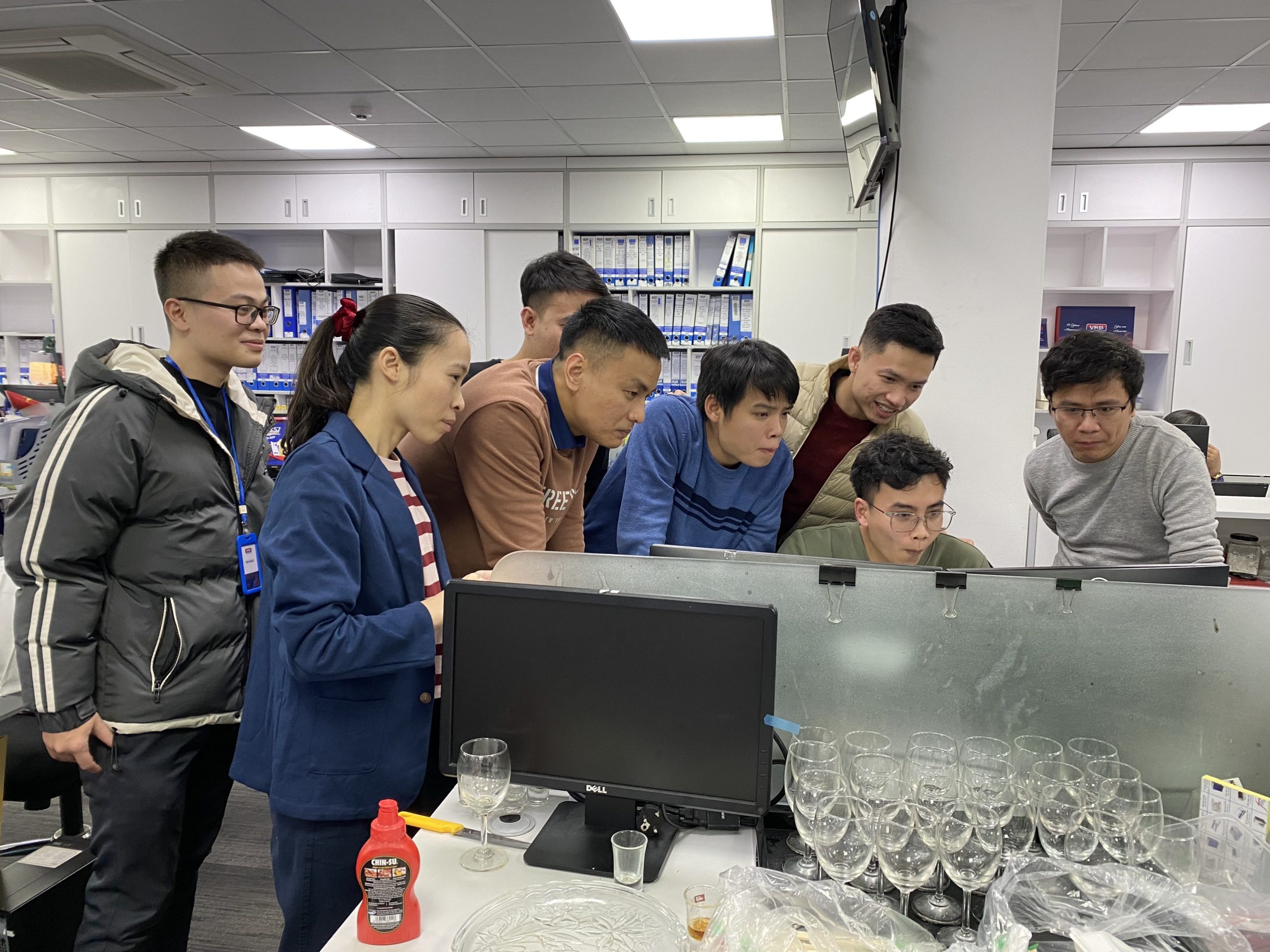 On the early morning of December 31, 2022, from 7:00 a.m., we were present to support the year-end settlement. The coordinated work to ensure that the system operates safely and stably throughout the Year end tasks. It is is the peak time when all banking-transactions are required to operate continuously and reliably. That work finish at 10am the next morning. Bank staff thanked the project manager and technical staff with warm smiles. In the evening, we rested together in a small warm party.